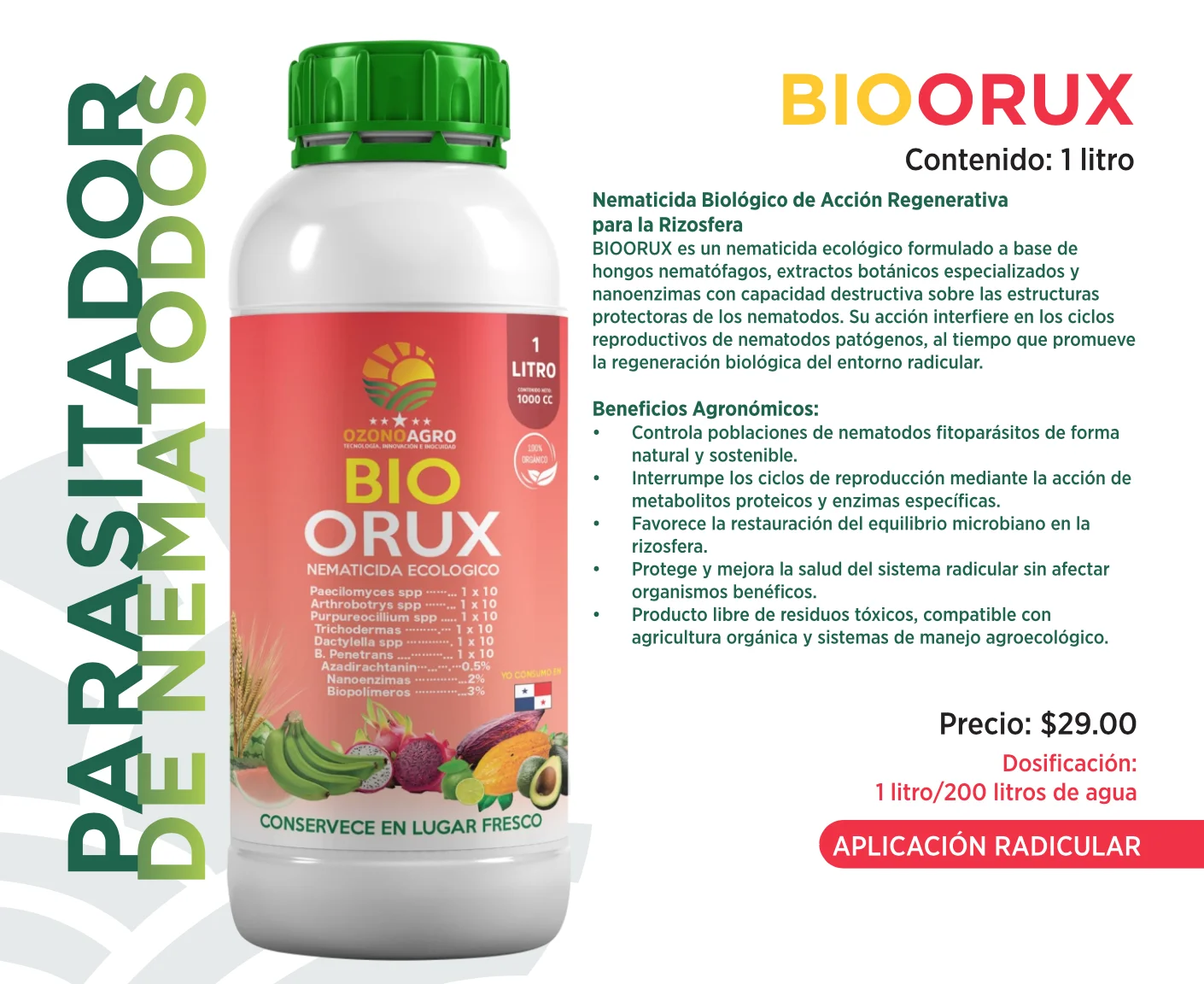 • ✓ Controla poblaciones de nemátodos Fito parásitos de forma natural y sostenible